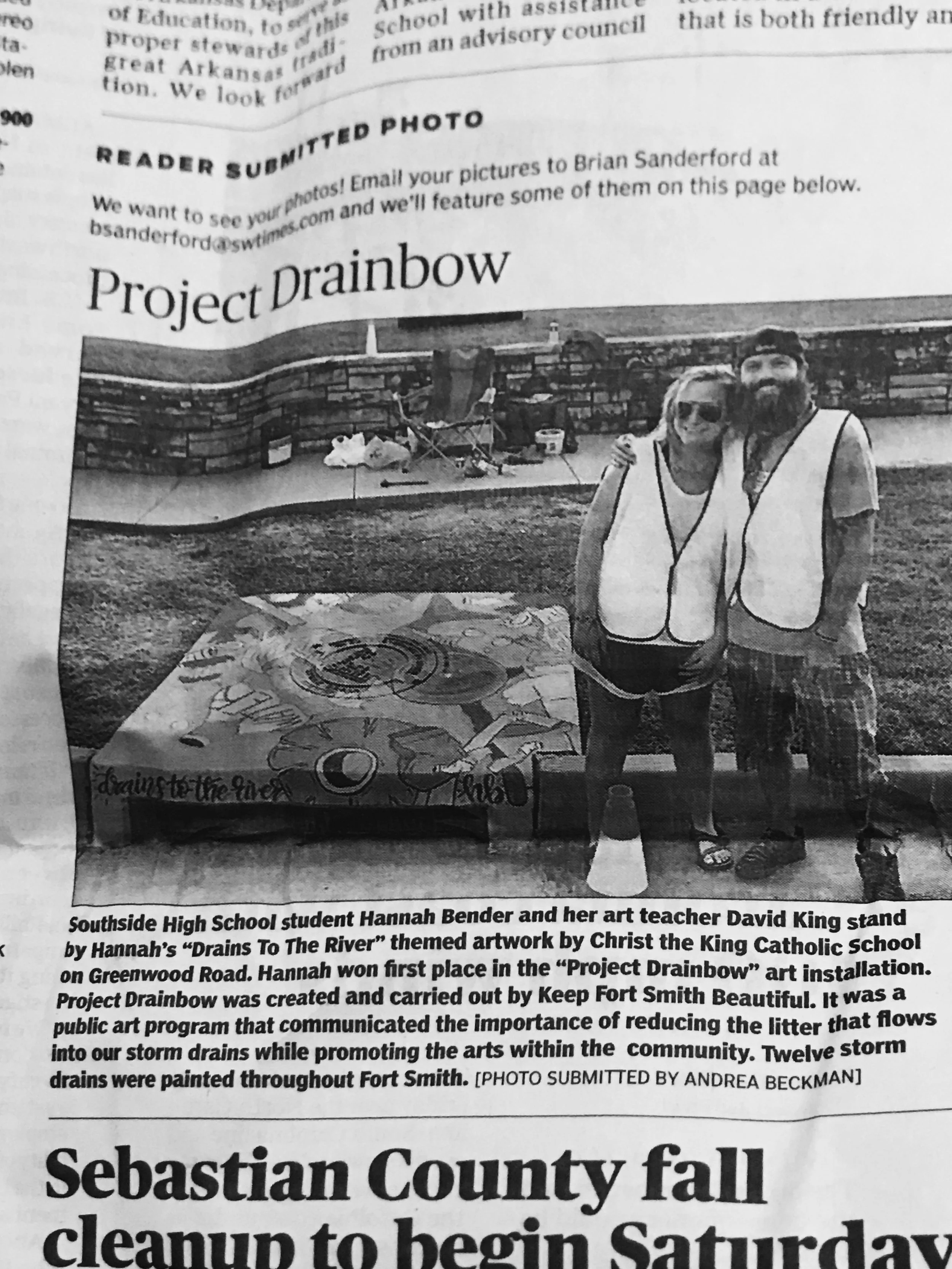 drains to the river was an installation project created in conjunction with Keep Fort Smith Beautiful’s initiative, “Project Drainbow.”